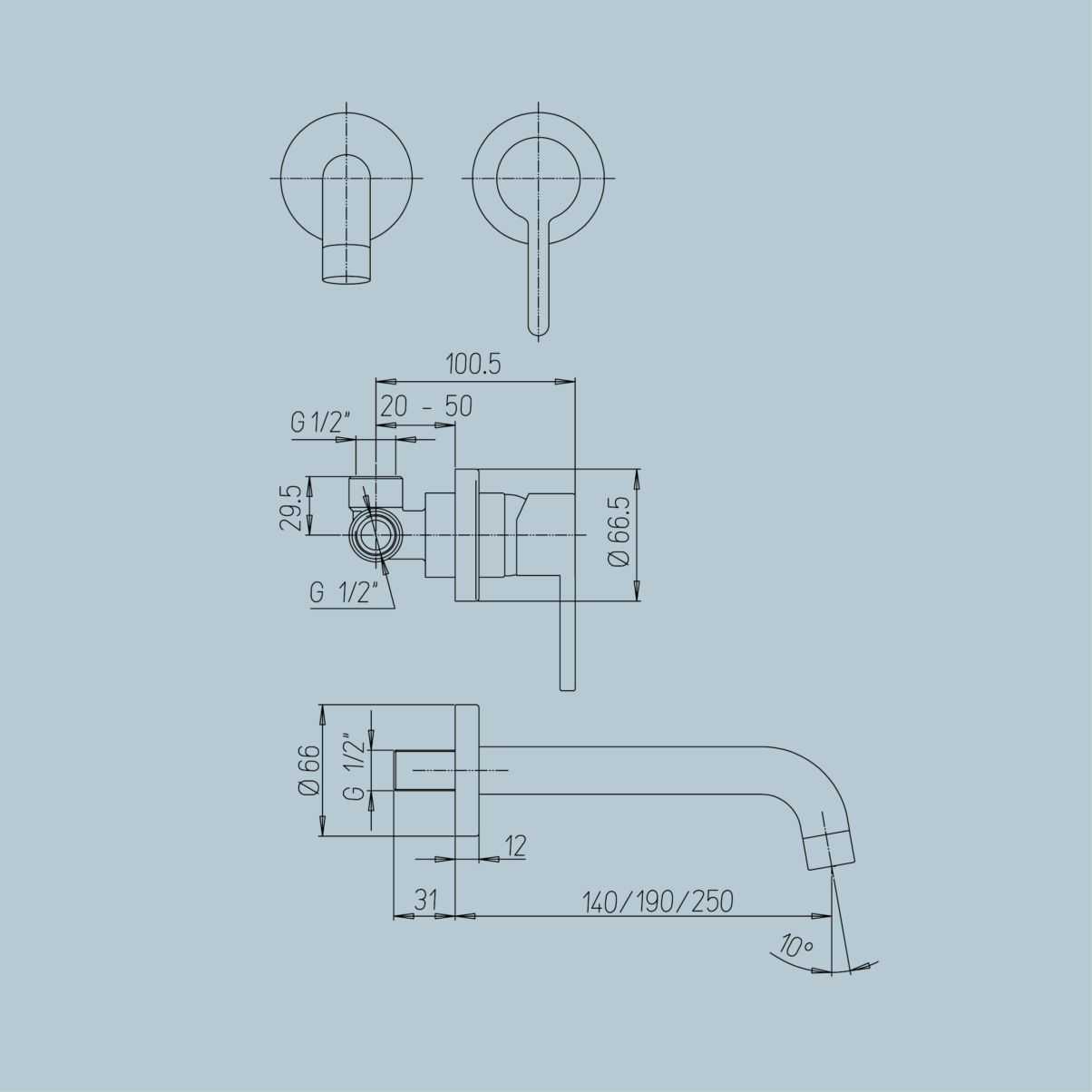 Miscelatore monocomando lavabo a muro Serie Sunset