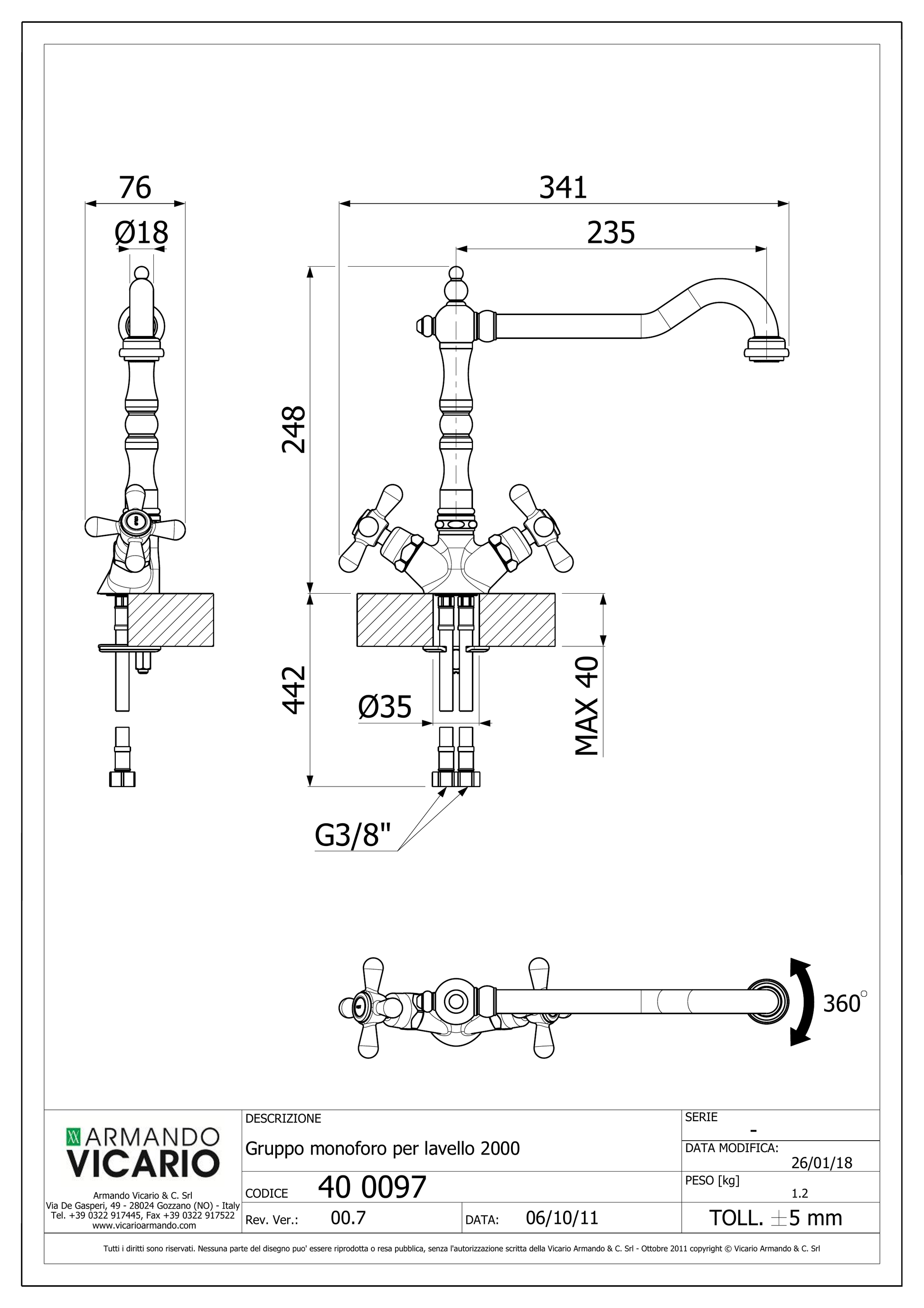 Miscelatore lavello cucina Old Fashion 2000