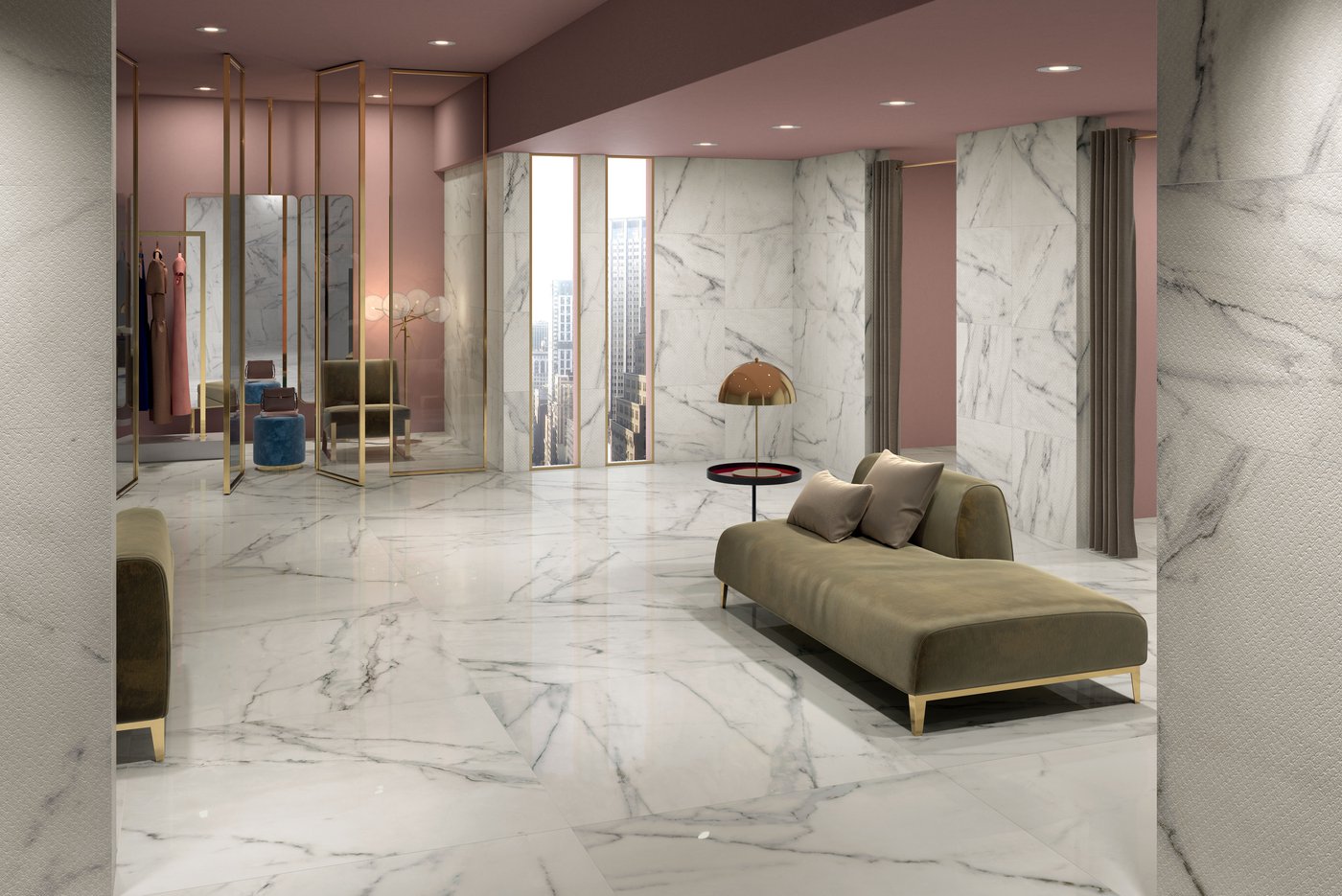 Piastrelle 120x120 Motif calacatta silver rettificato glossy