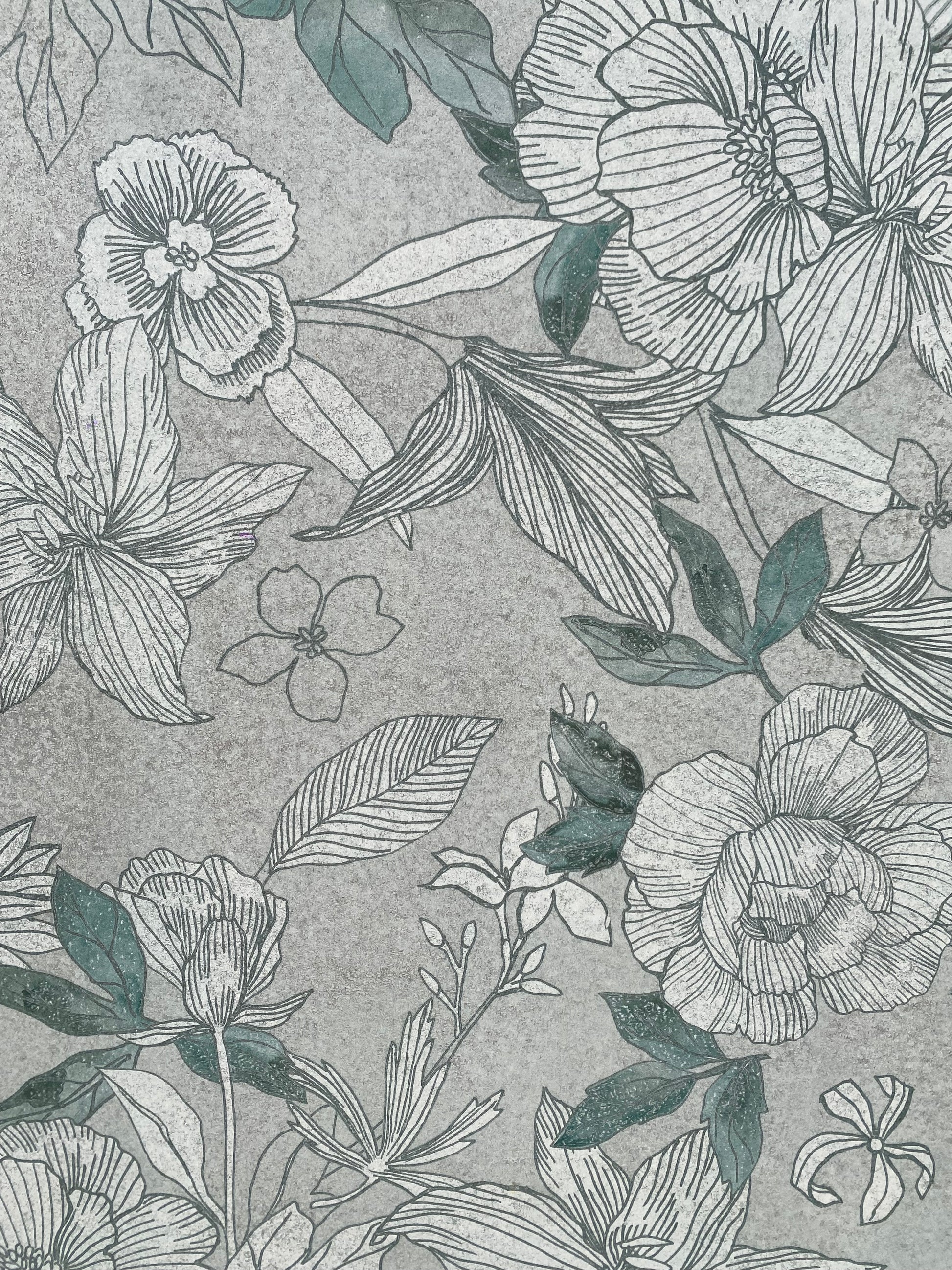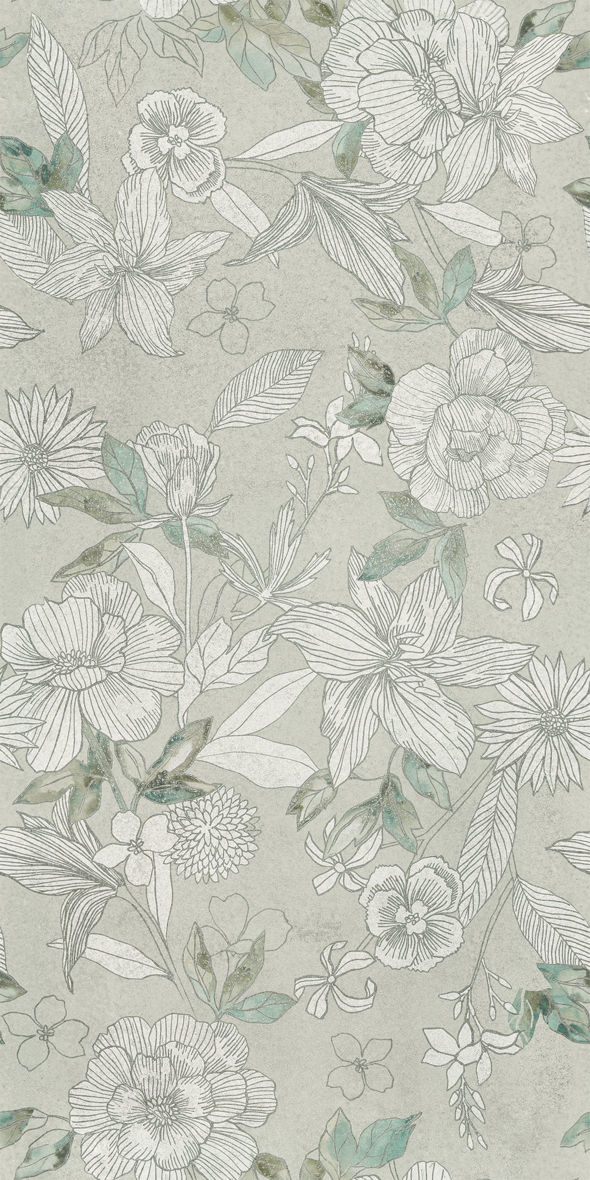 Piastrelle 60x120 Wallart lily rettificato decoro fiori grigio verde