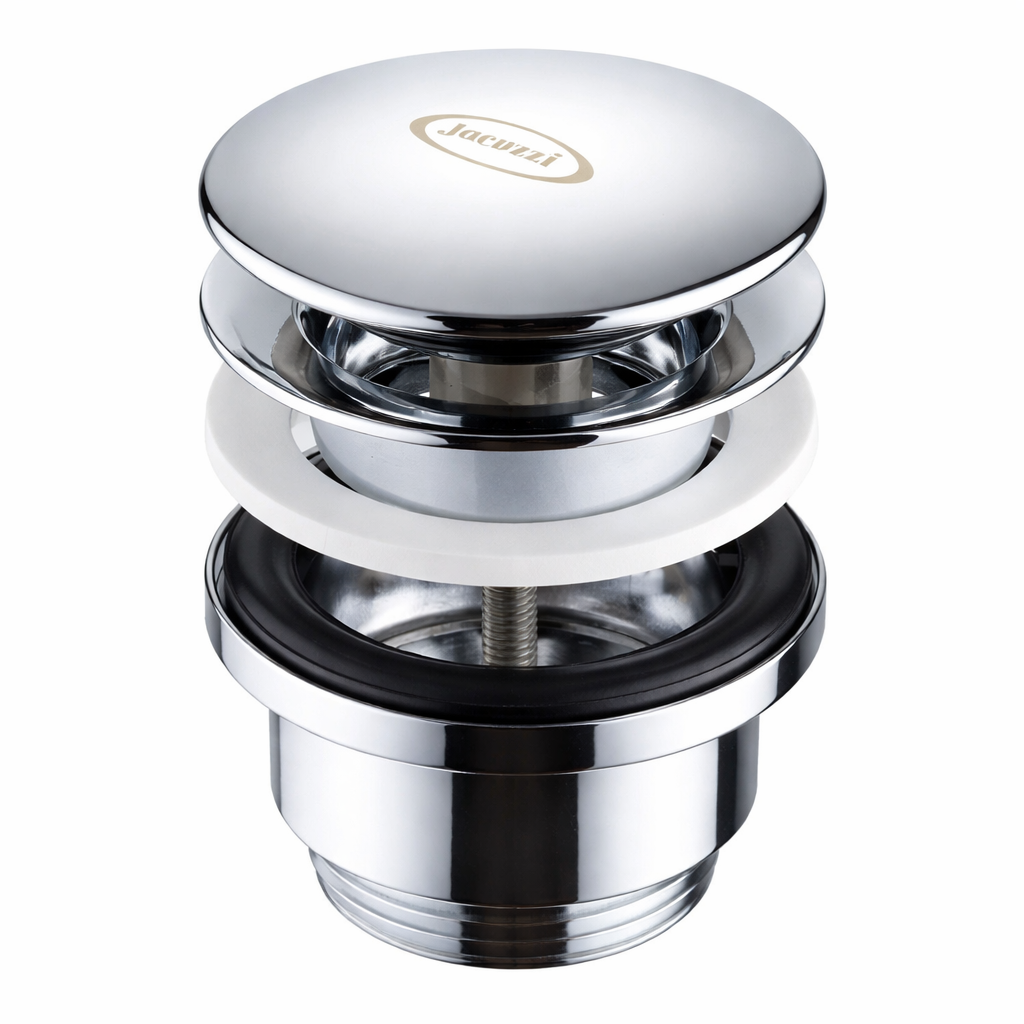 Piletta universale per lavabo e bidet con sistema click-clack, realizzata in ottone con finitura cromata lucida ad alta brillantezza. Apertura e chiusura con semplice pressione per un design elegante e minimale. Resistente alla corrosione, ideale per lavabi moderni e classici. Facile da installare e da pulire.
